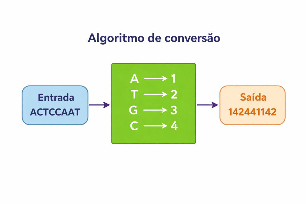 Para transpor essa barreira, precisamos aplicar uma etapa de pré-processamento. Vamos implementar um conversor no nosso código Python que fará a varredura do arquivo FASTA e traduzirá cada caractere genético para um valor númerico correspondente.