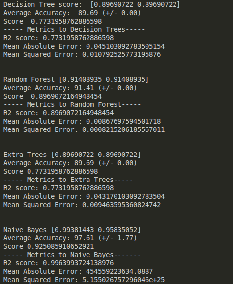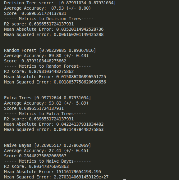 print('----- Metrics to Extra Trees-----')